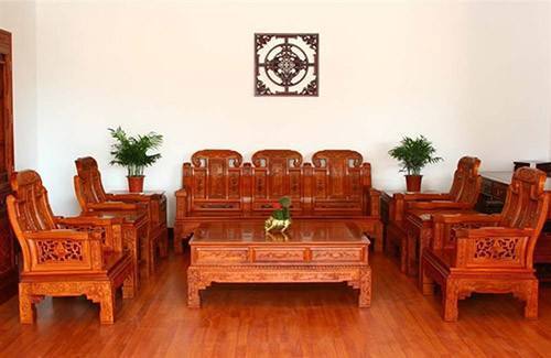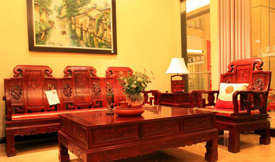 红木家具“U”式布置是中式装修客厅较为理想的座位摆设。它既能体现出座位,又能营造出更为亲切而温馨的交流气氛。 就我国目前的居住水平而言,一般家庭还不可能有较大面积的客厅,因此,选用占地少而功能多的组合沙发最为合适,必要时可当卧床使用。如果家具是浅色的,效果就更好,可以使房间显得宽敞些。墙壁色调最好采用浅黄色、橙色等偏暖的色彩。从视觉上来看容易给人宁静平和的感觉。