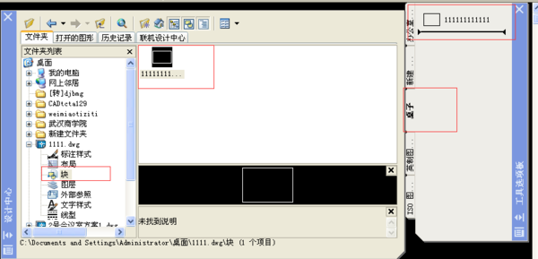 (5)、在设计中心右边框中选择分类的图块,鼠标左键按住不松,拖动到工具选项板刚才创建的分类下。