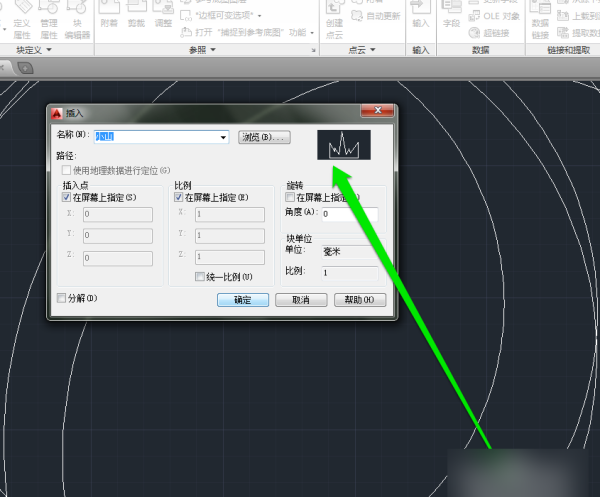 6、点击确定按钮以后,在CAD中选择一个插入的位置。