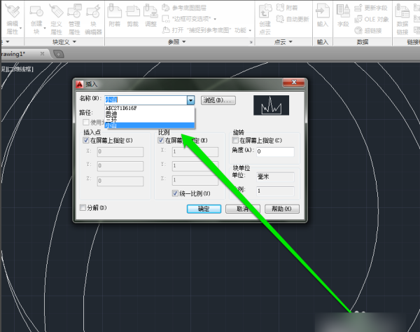 5、进入插入块的页面,我们选择一个已经绘制好的块。