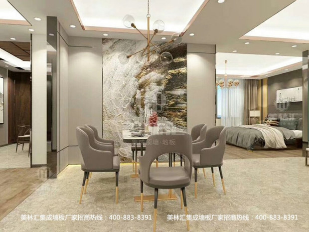 美林汇展厅集成墙板客厅餐厅效果图