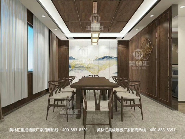 美林汇展厅集成墙板茶室洽谈区效果图