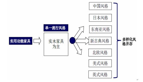 我国家具工业的区域经济特征十分明显,生产企业主要分布在华南、华东、华北和东北等地区,江苏、浙江、上海、广东为我国主要的家具生产基地。中国内地已形成了初具规模的四大家具产业区,分别是以沈阳、大连为中心的东北家具工业区;以上海、江苏、浙江为中心的华东家具工业区;以广州及周边的顺德、中山、深圳及东莞为中心的华南家具工业区。以北京、天津、唐山为中心的华北家具工业区。