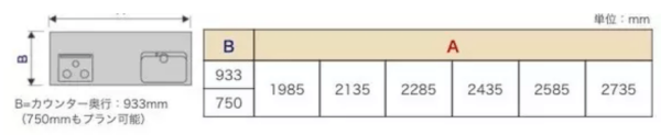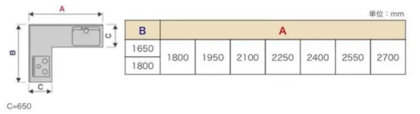 图中B为宽度:650mm。当然也有更窄的,国内也有做到550mm甚至500mm左右的。不过目前厨具越来越大的趋势加上考虑使用的便利性,建议做到650甚至700mm左右。A是标准尺寸的长度,可以做到豪华的3600mm。