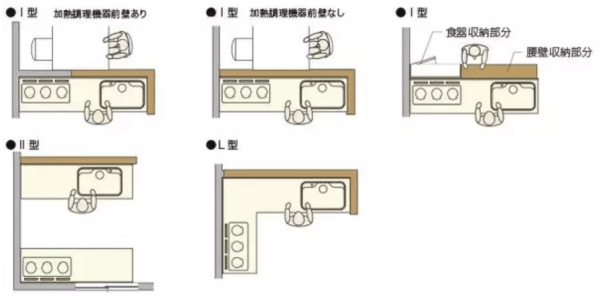 厨房的布局千变万化,归纳起来可以有如下一些布局方式: