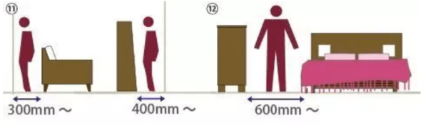 出入口、通道和床与其他家具的距离:600mm以上;