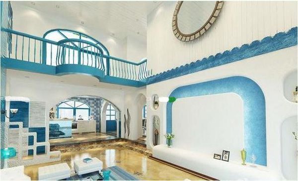 地中海风格的居室设计中都会采用到蓝色,蓝色的客厅装饰很有小清新的宜人舒适感,而清晰淡雅的客厅墙面颜色既休闲舒适又美观,同时搭配上同色系的沙发或装饰品,更能够凸显出蓝色调的温馨、淡雅。干净、清雅的色彩搭配让整个客厅更加清新宜人。不过需要注意不要选择深蓝色,如果客厅中以深蓝色为主色调,时间一久则会让居住在此的人心情郁闷,精神也会受到影响。