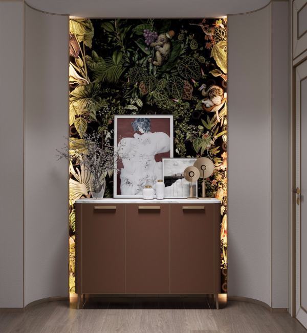 玄关柜是指厅堂的外门,也就是居室入口的一个区域,具有装饰、保持主人的私密性、方便主人换鞋脱帽等多种作用。