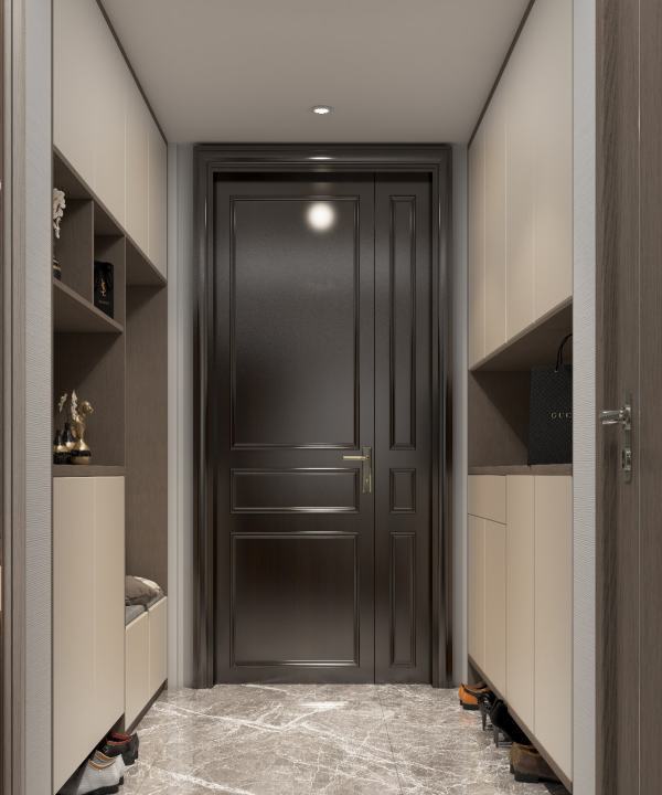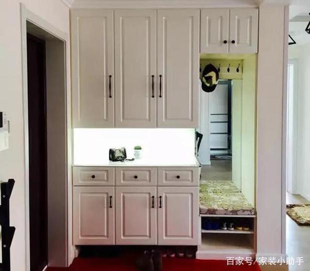 玄关柜即进门储物柜,包括收纳鞋子、饰品、包包、雨伞等多功能收纳区,算是一个较为复杂的收纳区,又是入门之景,算得上是房屋纳薯轿的门面了。