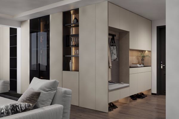 如果玄关的面积足够大,打造成开放式的衣帽间也是不错的选择。