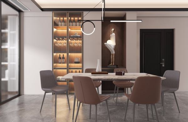 一种是大门处在客餐厅中间,所以会在临近一侧的墙面做玄关柜,拉迷的设计师为了保证采光,一般不会做全封闭的柜体,保证一定的透光性和视觉延伸性。还有一种是入户就在餐厅位置,更适合打造一面鞋柜、酒柜的组合柜体,隔断式设计保证空间的隐私性和功能性。