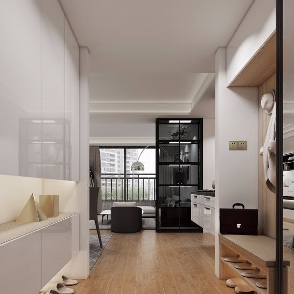 比短廊要更长一些,所以容易显得狭长逼塞。所以在设计玄关柜的时候要更注重空间的层次感,丰润空间。可以在两侧设计满墙柜,拉迷生态澳松板,一柜到顶不拼接、无落灰,做中空设计,增加平台放置包包钥匙等,家里有老人孩子的直接设计成换鞋凳更贴心哦。安装感应灯,释放双手,回家时总有一盏灯在等你。