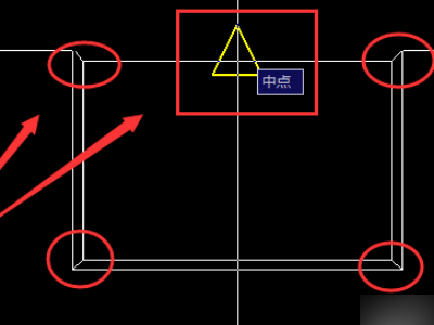 5、将两个矩形的四个端点直线连接,在中点位置绘制一条直线。