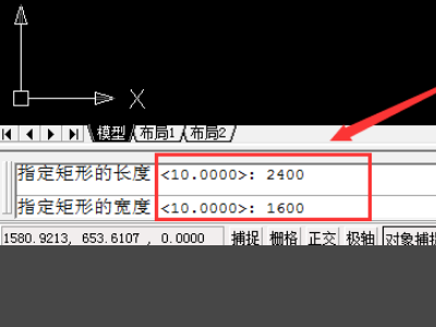 3、输入长度2400,宽度1600,空格键就绘制出了一个矩形。
