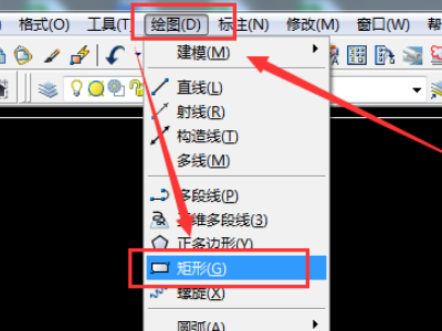 2、CAD界面,点击上方菜单“绘图”——“矩形”,也可以直接输入快捷键“REC”回车键。