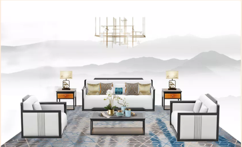 家具配置方面:新中式风格的家具可为古典家具,或现代家具与古典家具相结合。中国古典家具以明清家具为代表,在新中式风格家具配饰上多以线条简练的明式家具为主。