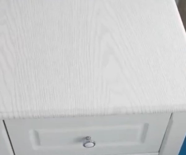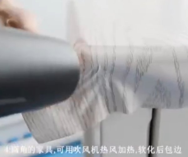 3、木纹贴纸贴好以后用热风机将家具死角吹一吹,加热包边。