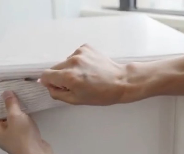 4、用壁纸刀将木纹贴纸多余部分慢慢裁掉。