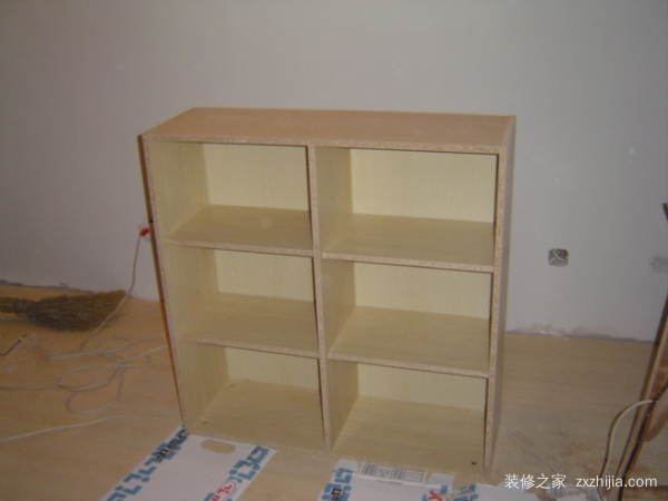 5、 同时把其他衣柜内的其他隔板等放好、连接好,注意方向和相应格子的地方。此时,柜身基本安装完毕。