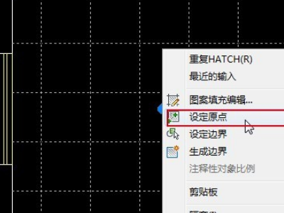 5、这时候会发现地板的四边都出现断砖,需要重新指定铺装的起点,也就是从一个墙角开始铺装地板。右键单击填充图案,选择“设定原点”。
