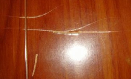 修复方法:用锋利刀片在鼓泡部位的中部顺木纹方向割一刀,接着用注射器将胶水注入缝中,手指轻轻地压在鼓泡的上部,擦干净溢出的胶水,并覆盖上一层塑料薄膜,