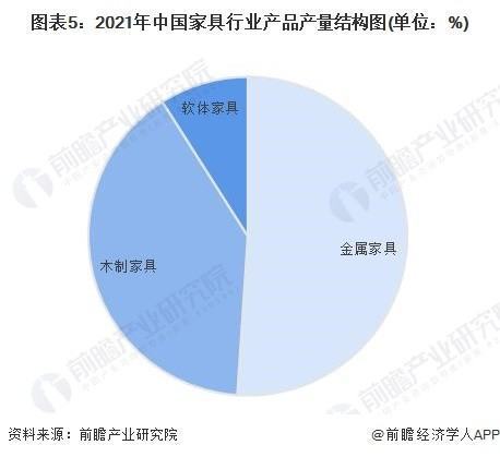 从细分市场陆冲轮来看,在家具分类中,我国主要以生产金属家具及木质家具为主。2021年中国木质家具产量占比为39.95%,金属家具产量占比为51.05%,两者产量合计占比超过90%;而软体家具产量占比仅为9.00%。