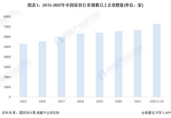 近年来,我国家具行业不断洗牌,行业进入有序发展阶段。但行业规模以上企业仍然在不断增长。2021年中国家具行业规模以上企业数量为6647个,同比增长1.6%。2022年1-10月中国家具行业规模以上企业早信数量达7260家,创历史新高,较2021年同期增加647家。