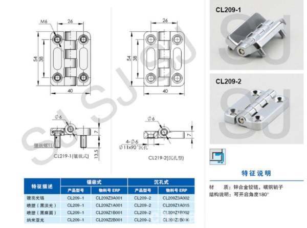 家具五金配件中铰链占据重要位置。铰链的质量好坏直接关系到家具与门的使用。 常见的分类 1、按底座类型分为脱卸式和固定式两种; 2、按臂身的类型又分为:滑入式和卡式两种; 3、按门板遮盖位置又分为全盖(直弯、直臂)一般盖18厘,半盖(中弯、曲臂)盖9厘,内藏(大弯、大曲)门板全部藏在里面; 4、基携按铰链发展阶段的款式分为:一段力铰链、二段力铰链、液压缓冲铰链、触碰自开铰链等; 5、按铰链的开门角度分:一般常用95-110度、特殊的有25度、30度、45度、135度、165度、180度等等; 6、按铰链的类型又分为:普通一、二段力铰链、短臂铰链、26杯微型铰链、弹子铰链、铝框门铰链、特殊角度铰链、玻璃铰链、反弹铰链、美式铰链、阻尼铰链、厚门铰链等等。 按使用场所分类 1.一般合页 就是我们常说的一般合页,它可以用于橱柜门,窗子,门等。合页,从材质上可以分为:铁质,铜质,不锈钢质。从规格上可以分为:2”(50mm),2.5”(65mm), 3”(75mm) , 4”(100mm) , 5”(125mm) ,6”(150mm) , 50—65mm的铰链适用于橱柜,衣柜门,75mm的适用于窗子,纱门,100—150mm适用于大门中的木门,铝合金门。普通合页的缺点是不具有弹簧铰链的功能,安装铰链后必须再装上各种碰珠,否则风会吹动门板。另外还有脱卸铰链,旗铰,H铰等特殊铰链它们根据各种特殊需求的木门可以拆卸安装,很方便,使用时受方向限制,分左式,右式。 2.弹簧铰链 主要用于橱门,衣柜门,它一般要求板厚度为18—20mm。从材质上分,可以分为:镀锌铁,锌合金。从性能上分,可以分为:需打洞,不需打洞两种。不需打洞就是我们所称的桥式铰链。桥式铰链样子看似一座桥,,所以俗称桥式铰链。它的特点是不需要在门板上钻洞,而且不受式样限制。规格有:小号,中号,大号。需打洞,就是现常用在橱柜门上的弹簧铰链液腔等。它的特点:门板必须要打洞,门的式样受铰链限制,门关上后不会被风吹开,不需要再安装各种碰蛛。规格有:&26、&35。其中有可脱卸式定向铰链和不脱卸式的无定向铰链之分。如龙升铰链的303系列就是可脱卸式定向铰链,而204系列就是不脱卸式的弹簧铰链从形状上可分:全盖(或称直臂、直弯)半盖(或称曲臂、中弯)内侧(或称大曲、大弯)铰链附有调节螺钉,可以上下、左右调节板的高度、厚度,打洞那面两个螺丝固定孔距离一般为32mm,直径边与板两边距离为4mm(画图)。另外,弹簧铰链还有各种特殊规格,如:内侧45度角铰链,外侧135度角铰链,开启175度角铰链。 关于直角(直臂),半弯(半曲),大弯(大曲)的三种铰链的区别: 直角的铰链可以让门完全遮挡住侧板; 半弯的铰链可以让门板遮住部分侧板; 大弯的铰链可以让门板和侧面板平行; 具体可以参考图片 3.大门铰链 它又分普通型和轴承型,普通型上面已经讲闹锋衫过,现重点讲轴承型。轴承型从材质上可分铜质、不锈钢质。从规格上分:100X75 125X75 150X90 100X100 125X100 150X100 厚度有2.5mm、3mm轴承有二轴承、四轴承。从消费情况来看,选用铜质轴承铰链较多,因其式样美观、亮丽,价格适中,并配备螺钉。 4.机电柜铰链 它包括耐磨性能高的尼龙铰链;耐腐蚀,较高强度的锌合金铰链,合页;耐腐蚀,耐氧化,强度高的不锈钢铰链,常应用于机电柜门,机械设备操作箱等产品中 5.重型铰链 由于安装位置的特殊性,对铰链的要求也是很大的,一般尺寸在150MM 以上,承重力较大,外形结构符合柜门的特殊结构,常用于冷藏库,冷柜等大型的门,多为锌合金材质 6.异型铰链 又为转角合页,开门角度大,在日常使用中也是比较广泛的 7.其他铰链 有台面铰链、翻门铰链、玻璃铰链。玻璃铰链用于安装无框玻璃橱门上,要求玻璃厚度为不大于5—6mm。式样有打洞,具有弹簧铰链一切性能。不打洞为磁吸式和上下顶装式,如百事可,磁性玻璃铰链等。 家具铰链(见附图)根据安装组合的不同分为直插式和自卸式,两者不同之处在于当铰链底座的固位螺丝扭上之后,固定式不能将铰臂部分解除下来,自卸式则可以将铰臂单独解除下来,其中,自卸式又分为滑入式和卡式两种,滑入式通过扭松铰臂上的螺丝达到解除铰臂效果,卡式则可以通过手工更加简便地解除铰臂; 根据门板开启角度分为90度,100度,110度,180度,270度等;根据柜体组装需要的不同分为全盖(直板)半盖(小弯)和不盖(大弯或内嵌)。 看材质掂重量 铰链质量差,柜门用久了就容易前仰后合,松动下垂。大品牌的橱柜五金件几乎都使用冷轧钢,一次冲压成型,手感厚实,表面光滑。而且,由于表面镀层厚,所以不易生锈,结实耐用,承重能力强,而劣质铰链一般是薄铁皮焊制而成,几乎没有回弹力,用的时间稍长便会失去弹性,导致柜门关不严实,甚至开裂。 体验手感 优劣不同的铰链使用时手感不同,质量过硬的铰链在开启柜门时力道比较柔和,关至15度时会自动回弹,回弹力非常均匀。消费者可在选购时多开关柜门,体验手感。 观细节 细节可以看出产品是否优良,从而确认品质是否出众。优质的衣柜五金使用的五金件手感厚实,表面光滑,在设计上甚至达到了静音的效果。劣质五金件一般使用薄铁皮等廉价金属制成,柜门拉伸生涩,甚至有刺耳的声音。 挑选铰链除了目测、手感铰链表面平整顺滑外,应注意铰链弹簧的复位性能。簧片的好坏还决定了门板的开启角度,品质好的簧片可以使开启角度超过90度。 窍门 可将铰链打开95度,用手将铰链两边用力按压,观察支撑弹簧片不变形、