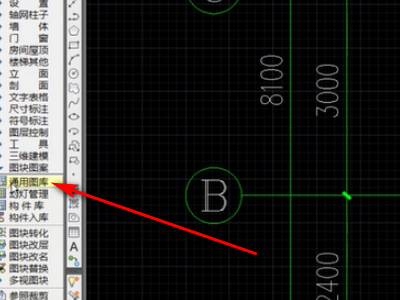 4、打开需要添加家具的图纸文件,点击左侧工具栏中的图块图案,然后点击通用图库。
