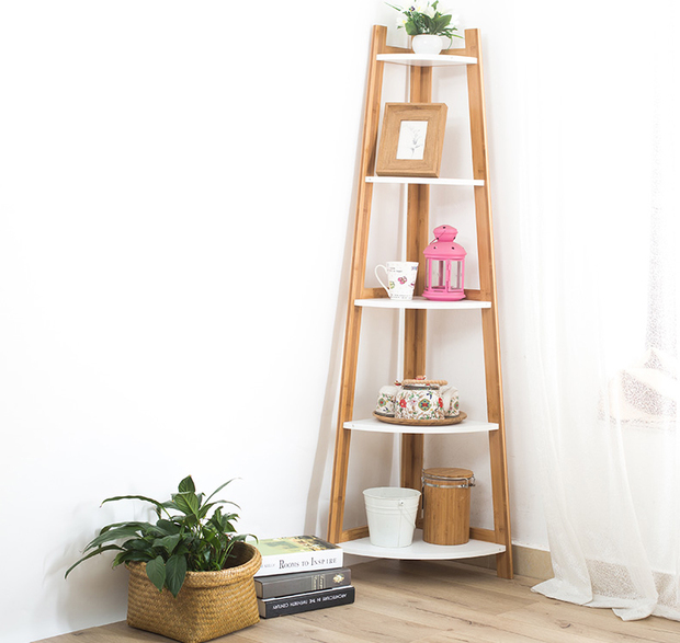 转角楠竹置物架,放上一些绿植,为家中增添自然的气息。