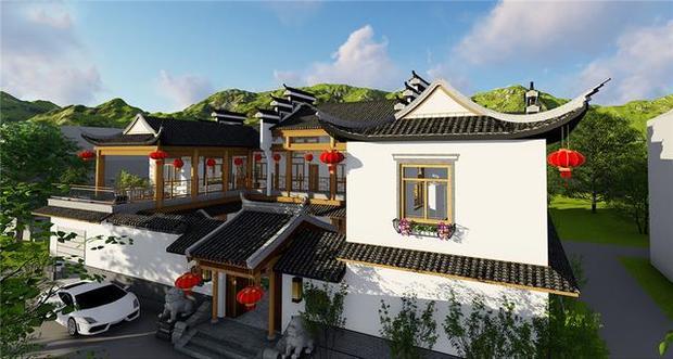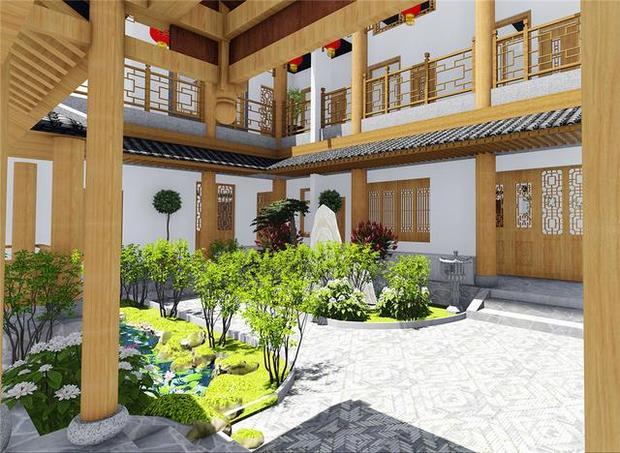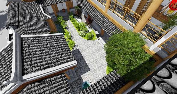 △自建徽派合院别墅 庭院效果图