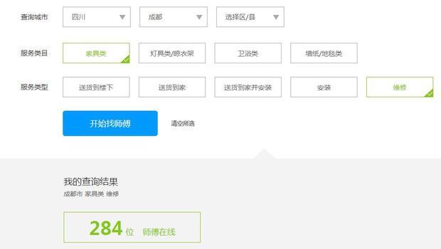 在我们万师傅的平台成都的家具维修师傅有284位,当你在我们万师傅的平台首页发布任务后,他们都会主动接单报价,你雇佣其中一个就可以 咯、