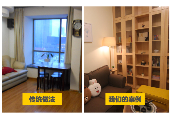 一般来讲,业主在购买(成品)家具时,都会根据居室的空间大小来确定家具的尺寸,但是在家具买回来之后,却发现不是那么回事。首先是达不到家具店的那种展示效果,因为家具店的家具展示是在一个完全不同于家居环境的特定空间,面积大、软装丰富,给人的感觉非常好,但一般的家庭,是达不到家具店的那种展示环境的,所以就怎么也找不到在家具店看时的那种感觉了。第二,也是非常头疼的一点,虽然尺寸左量右量,已经和家里的布置比较相衬了,但还是会出现要么高度方向空了一块很难看、要么长度、宽度留了一段的现象,没有办法与房间尺寸完美吻合,那些多出来的空间很尴尬,放东西吧,杂乱不好看,空着吧,怎么也不顺眼,让人很不舒心。