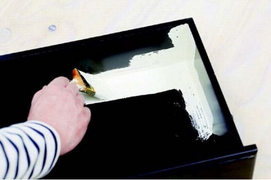 4、首先我们用刷子将抽屉的表面和边角进行重新刷漆,要尽量细致。