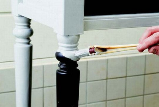 6、最后就是用斜柄刷给家具的侧面和脚上漆,完成这一步就大功告成,一件崭新的家具又出现了。
