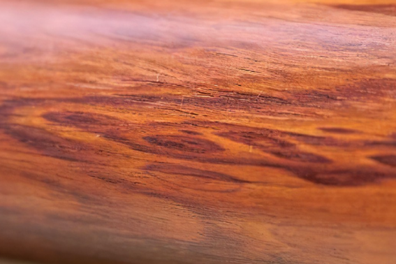 木纹方向的横向断截面在上完色之后用240目的砂纸进行打磨,目的是保持断截面光滑的同时保持色调的协调性;其次用毛笔对不均匀的地方进行补色,干了之后再补,直至原色协调一致。