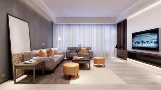 3、地面装修 这类房型空间有限,大家在装潢时应避免采用墙体式隔断,比较合适的装饰方式是采用屏风、矮柜等对空间进行分隔。地面装饰时应采用明度较强,纯度较低色系。地面色彩应略重于家具色彩。也可在地面铺一些马赛克或鹅卵石做导向,打破原本沉闷的视觉效果。