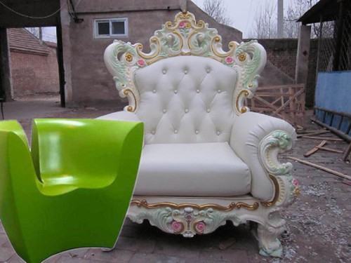 树脂(玻璃钢)家具具有可设计性好、可塑性高、装饰性强、比强度高、耐疲劳性好、减振性好优点等。玻璃钢家具制造技术将欧式家具的豪华、高雅、富丽以及我国古典的装饰艺术与玻璃钢成型技术有机地融为一体,不仅可生产各式家具,而且还能生产各种规格型号的雕花工艺品、装饰花线、高级艺术木线和罗马柱、大厅吊顶以及仿实木雕花门等。