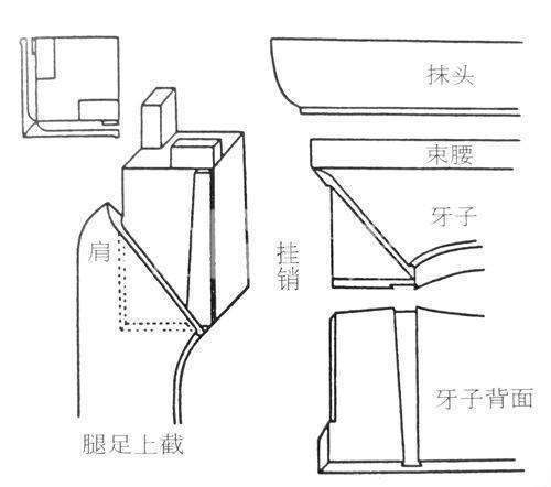抱肩榫指有束腰家具的腿足与束腰、牙条相结合时所用的榫卯结构。也可以说是家具水平部件和垂直部件相连接的榫卯结构。从外形看,此榫的断面是半个银锭形的挂销,与开牙条背面的槽口套挂,从而使束腰及牙条结实稳定。