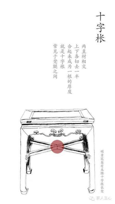 明清家具部件名称。方杌、方凳四腿对角设横枨,十字形交叉,俗称“十字枨”。