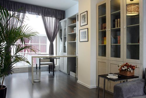 二楼搭建了平台,作为书房的使用区,使得在书房的设计上能够满足大气的效果,并增加了书房的储藏量;