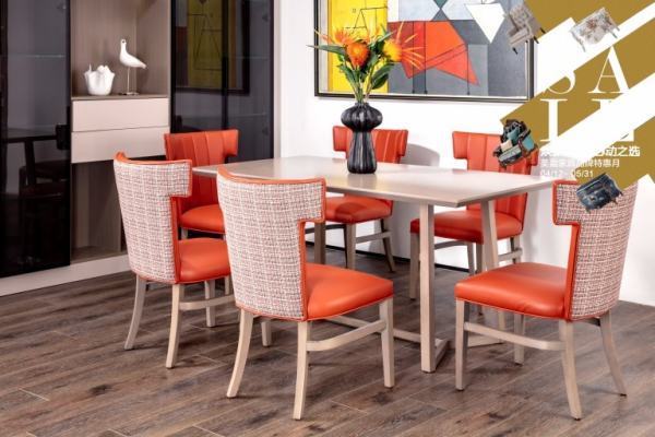 如果要塑造出更加清新自然的居室效果,建议选择墨绿色、橘红色、高级灰、木色等色彩来点缀空间。如,墨绿色沙发、灰色茶几、橘红色单人沙发椅、木色餐桌等,能产生简约舒适的大自然风格。