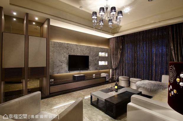 客厅的家具应根据室的活动和功能性质来布置,其中最基本的、也是最低限度的要求是设计包括茶几在内的一组休息、谈话使用的座位(一般为沙发),以及相应的、诸如电视、音响、书报、音视资料、饮料及用具等设备用品,其他要求就要根据起居室的单一或复杂程度,增添相应家具设备。