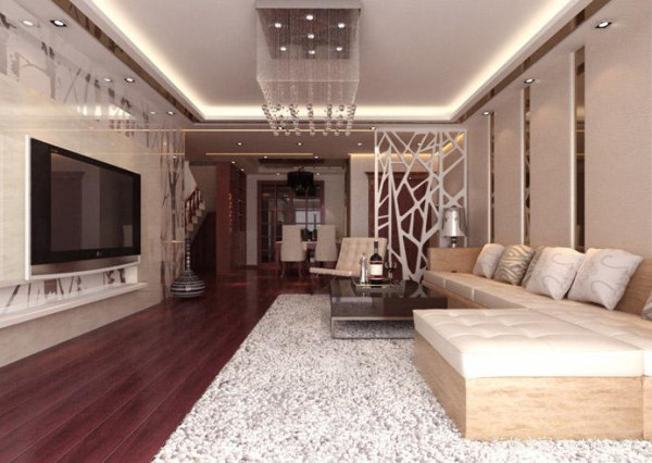 如果白色家具过多(尤其是高的例如柜子)那么地板的颜色就不要太深,色差和家具拉得太大的话,倒反会让您的家具色彩过浮,而地板过死沉,整个家居视觉上失重。如果感觉地板的颜色比较单调的话,可以在地毯上铺上一张地毯,白色家具搭配娇艳的花朵,二者在和谐中统一,谱写出一出浪漫的乐章。
