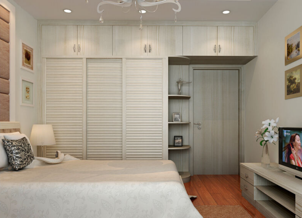 5、光线较好的房间建议挑选略微深色的橡木颜色地板。家私、衣柜、妆台等都大面积运用了浅白色,橡木颜色地板才会完美地表现它的光彩,给空间增添了一份质量感。