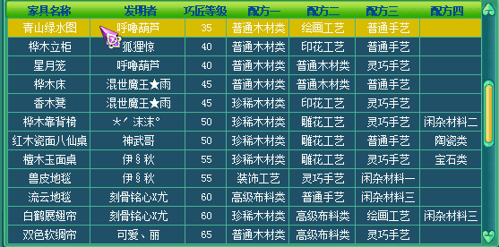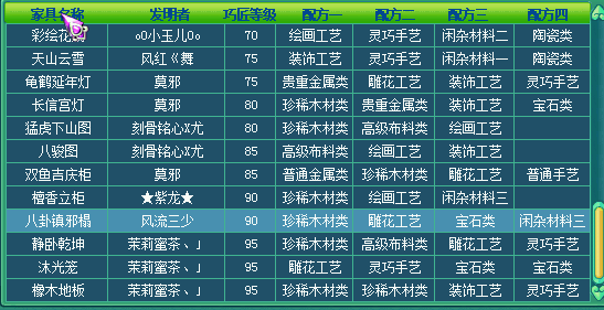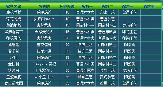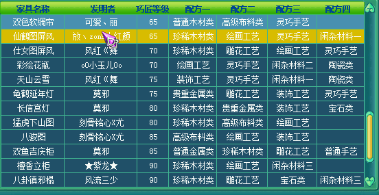 在临仙辅助技能或者帮派师爷那学习巧匠技能,然后【获得方法】 (1)在长安城(483,246)的“家具设计师”处可以直接购买到初级的功能类家具。 (2)学习了“巧匠”技能的玩家可以自己制作家具。找“家具设计师”,制作各种家具的“设计图”。制作完成后,就可以依据图纸获得相应的家具了。 制作家具设计图消耗活力,而且不一定能成功,家具图设计成功点开家具设计图需要消耗体力。