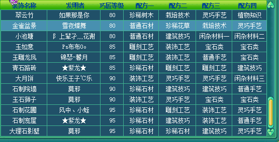 好了巧匠所有配方在这,LZ如果有对你有帮助,麻烦设置下最佳答案,谢谢。