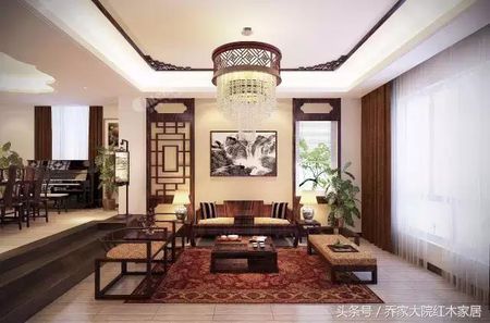 1.比例得当:红木古典家具的造型和色泽都十分抢眼,所以,对于不想改变原有现代气息的家庭来说,西式家具和中式家具可以按照7:3的比例来搭配。