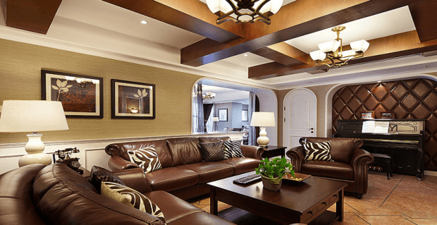 现代内饰家具所占的尺寸一般较大,所以控制美式家具的尺寸比例。一般而言,美式家具放置占家居面积的40%左右就合适了,剩下的留白还可以安置其他家中必备电器,如电冰箱等。