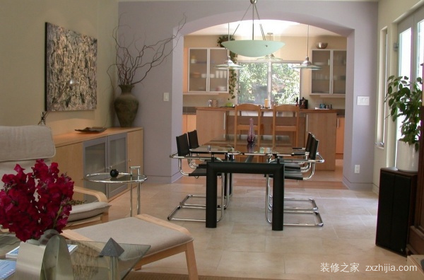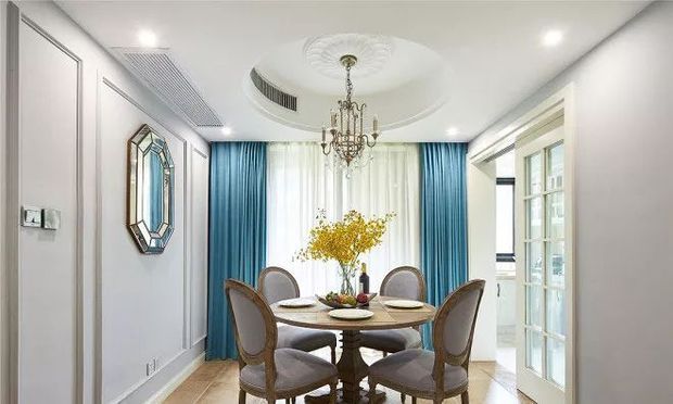▲餐厅处在一个隔间内,旁边即是厨房,餐厅的吊顶很有特点,样式与圆桌相呼应。